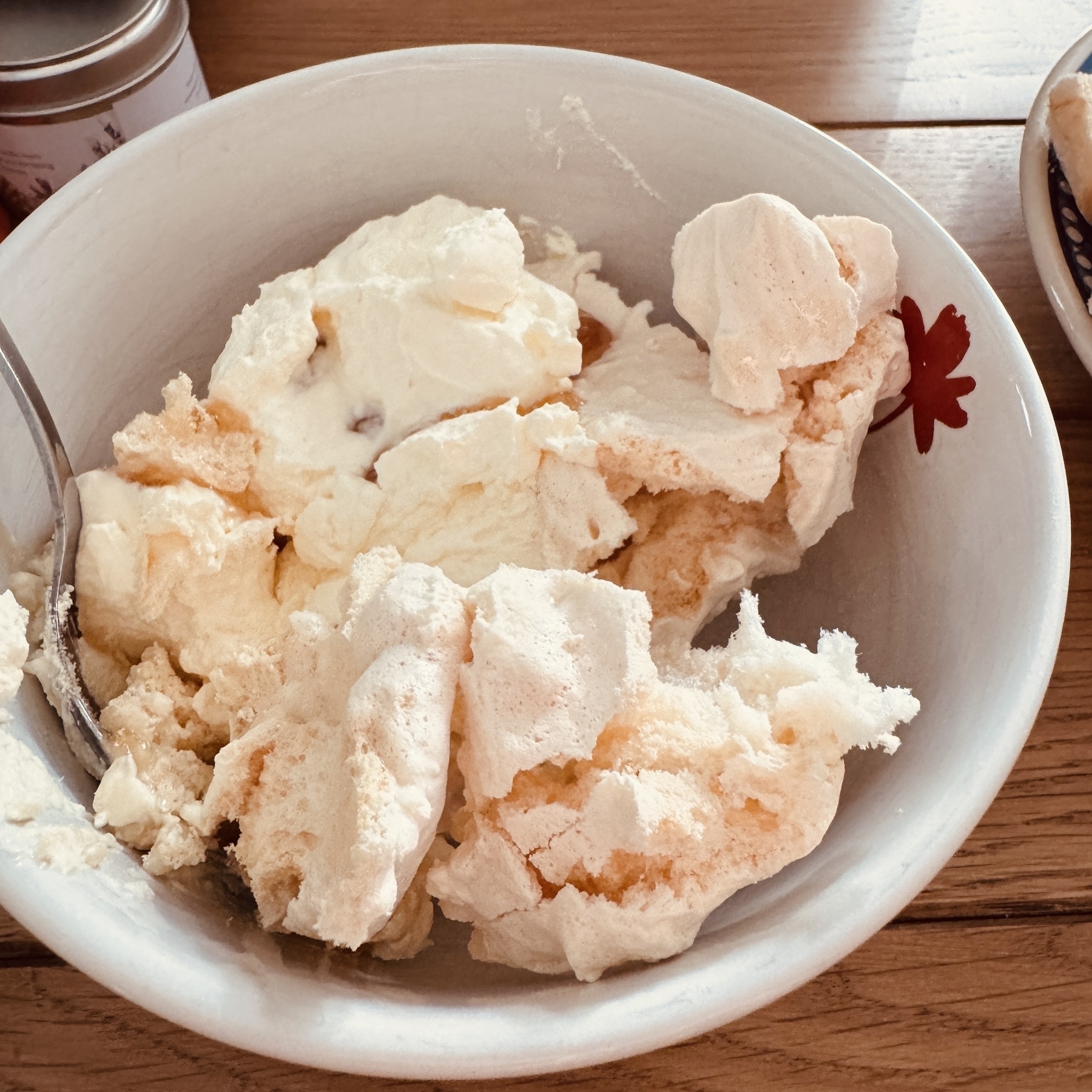 A few weeks ago, I saw a reminder on my phone to make a Pavlova with Mum. When I next saw her, I asked her for the recipe, which is below. Pavlova is my mum’s go-to dessert for Sunday dinners or events since I can remember, alongside her cheesecakes. I really wanted to learn how to make it, and as she was giving me the recipe, off the top of her head, she mentioned that she had gotten it from a woman she used to work with at HGW/Dulux Paints, Nuala Hammond. I thought that was quite cool that Nuala’s recipe is still being used to make this dessert and that I might pass it off to someone else. Anyway, I decided to try it out last Sunday. On my first attempt, it turned out really well and went great with cream and an Apple jelly we had picked up from an honesty box earlier that day.